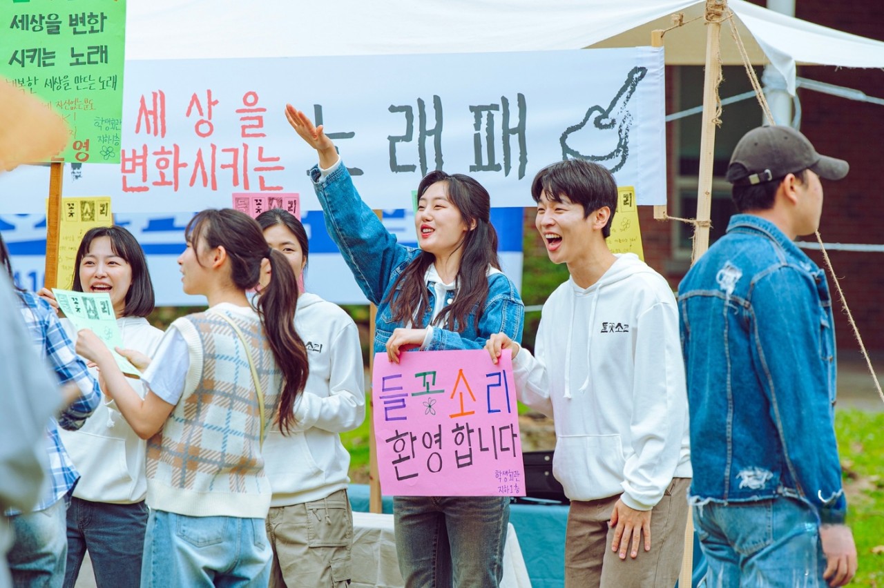 영화는 1992년, 민중가요 노래패 ‘들꽃소리’의 부원 강민영(김정연 분)을 중심으로 전개됩니다. 민영은 사상연구동아리 ‘깃발’과 함께 삼형 공업 노동자들의 파업 현장에 함께하게 되죠. 이 공장은 6개월째 임금을 체불 중이며, 노동자들은 생존권을 위해 투쟁 중입니다. 김형수(박철민 분)는 강직한 노동자 대표로 동료들을 이끌며, 윤동원이 연기한 동아리 선배는 민영에게 ‘연대’의 가치를 일깨워줍니다. 파업 당일, 경찰의 폭력 진압이 벌어지고 부상자와 연행자가 속출하는 가운데, 분노한 학생들과 시민들이 합세해 상황은 격화됩니다. 그 순간, 민영은 무대 위로 올라 외칩니다.